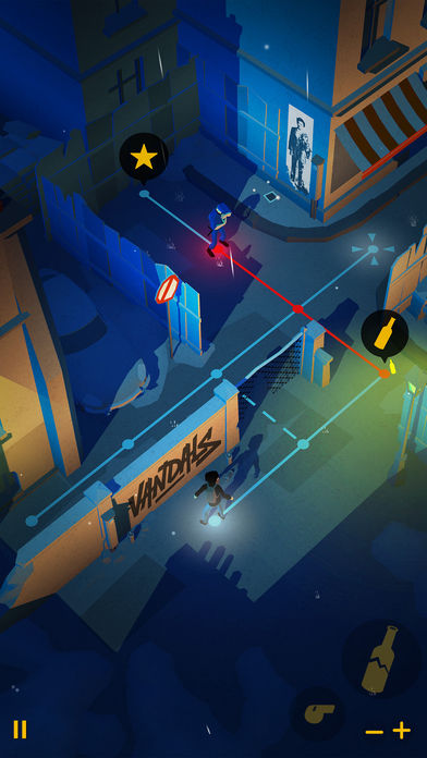 《破坏者》(Vandals)是游戏商ARTE Experience制作的一款涂鸦风策略手游,游戏类似于《杀手GO》的回合制玩法,简答易上手,在令人敬畏的涂鸦喷涂机制下,玩可以触摸屏幕绘制自己的涂鸦,躲过警察的视线,在相机和狗狗的帮助下成功描绘自己的作品。游戏加入了40位真实的街头艺术家的作品,巴黎、纽约、柏林、东京和圣保罗等具标志性的街头艺术城市也被收录其中。