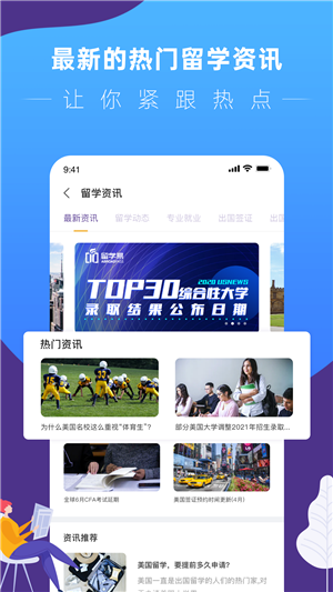 留学易是一款学习教育类app,重要通知必达;3、资讯:网罗各类留学资讯,机构各类活动分享及重要留学信息发布。