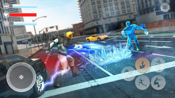超级飞行冰英雄是一款美漫画风的动作游戏,游戏中玩家就可以控制超级英雄进行闯关,保护市民是我们的责任,不断提升自己去获取更好的武器。横版街机风格,玩起来相当热血,并且有很多经典的背景音乐。快速按键可以让你轻松的操作出各种动作连招击败面前的敌人。