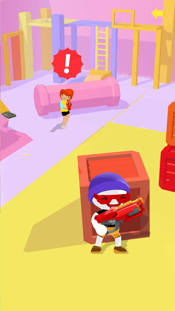 3.玩家和小伙伴玩起了用彩弹互相练习射击的游戏,通过不断解锁新颖玩具枪和利用障碍物的掩护。