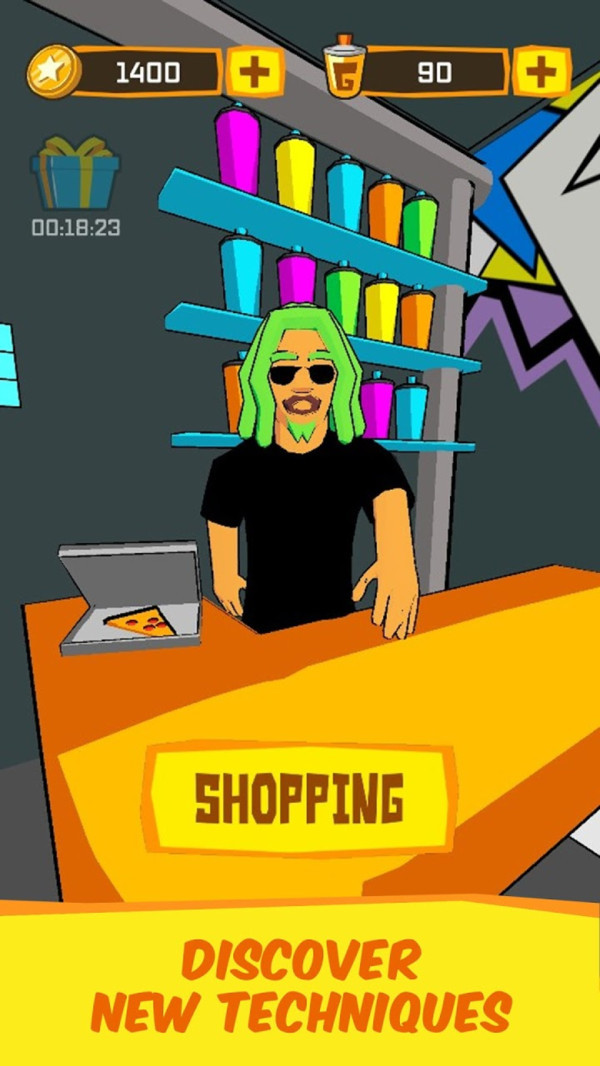 在这里你可以在城市中,尽情地涂鸦,将自己心中的想法尽情地发挥,在这里有着许许多多的任务等待着你来完成,获取金币,在商店中,购买不同颜色的涂鸦。
