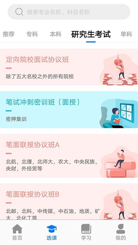 1、涵盖自考培训、考研培训为主集听课、做题、购买课程、了解考试资讯为一体的学习平台;