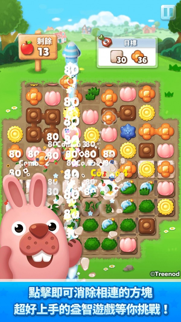 玩家可以和可爱的伙伴们一起重建小镇,通过重重关卡,打造完美小镇,LINE波兔小镇游戏里可以点击消除相邻的方块,根据自己的喜好帮小镇换新装。完成各区域的任务时还可获得樱桃、动物等奖励。分为两种的动物拥有能够培育道具的特殊能力,可培育出的道具也会随动物而有所不同。