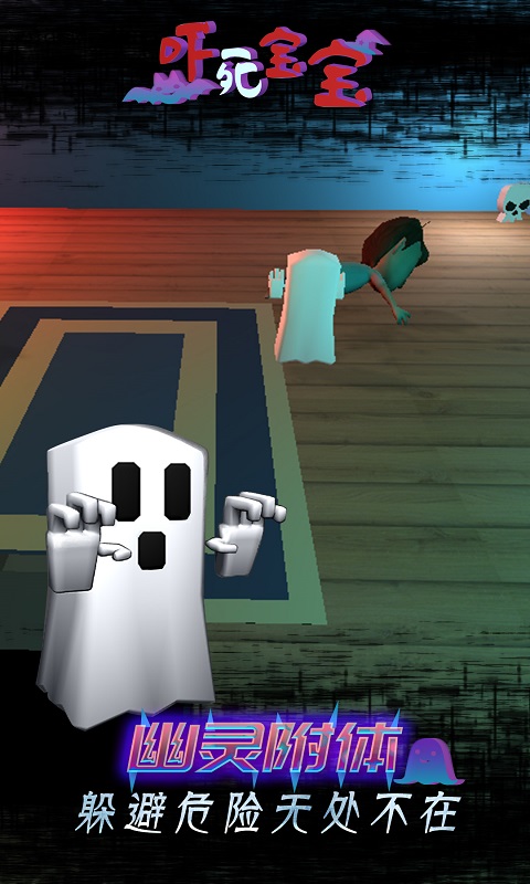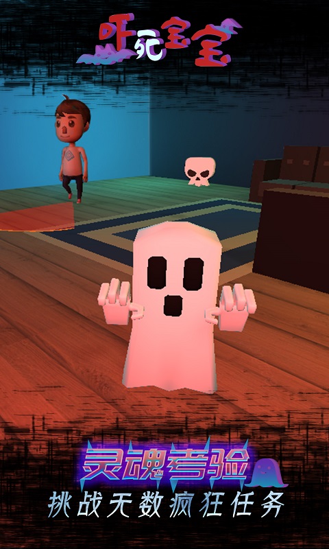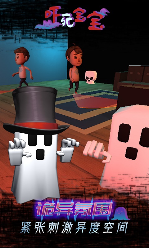 吓死宝宝带你体验玩法刺激的冒险闯关手游,玩家在游戏中的身份是一名幽灵,你的任务就是去惊吓人类,从看不到的区域突然出现吓他们一跳。人类的视野范围有限,所以你需要找到合适的机会出手就行了。