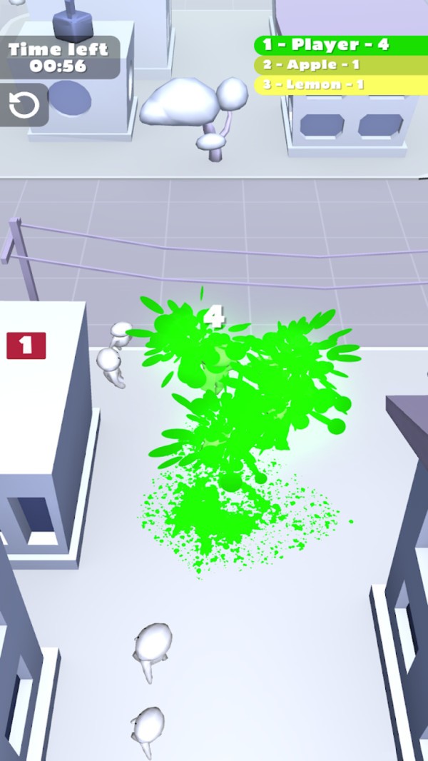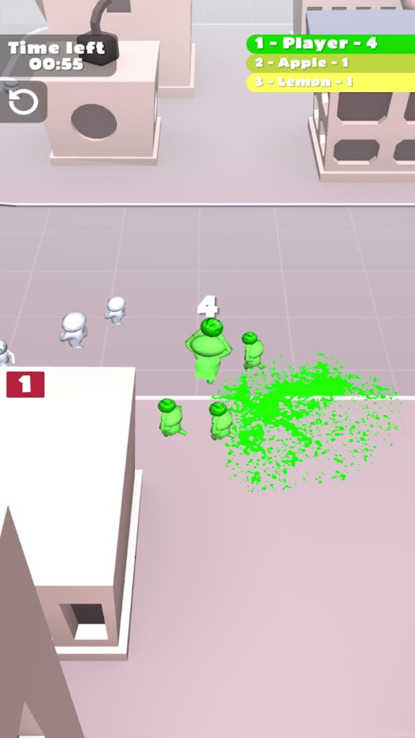 你需要在这里控制着自己的水果小人对其它的人群进行同化以此来不断的提升自己的队伍数量,里面的竞争队伍是非常多的在面对优于自己的数量优势上你需要合理的使用不同的进攻方法或者是战略性的撤退,丰富的场景会不断的解锁玩家可以在这里体会不同的新颖乐趣放松自己的心情是很不错的。