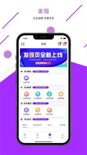 平台有专业的牙科设备,众多品牌供您选择,优惠多多超实惠,众多的优惠信息能够查看,每周都会有增值福利活动,折扣非常大,还有相关的资讯以及案例查看,是行业用户的好助手。