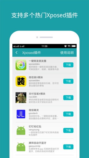 XPOSED爱好者有福音了!XPOSED框架也可以运行在分身大师内部了。研发哥哥昼夜开发,分身大师终于适配xposed框架及热门插件,免root直接运行XPOSED框架。