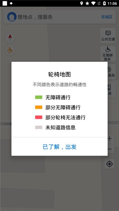 1、室内外定位:显示周边盲道或无障碍通道情况